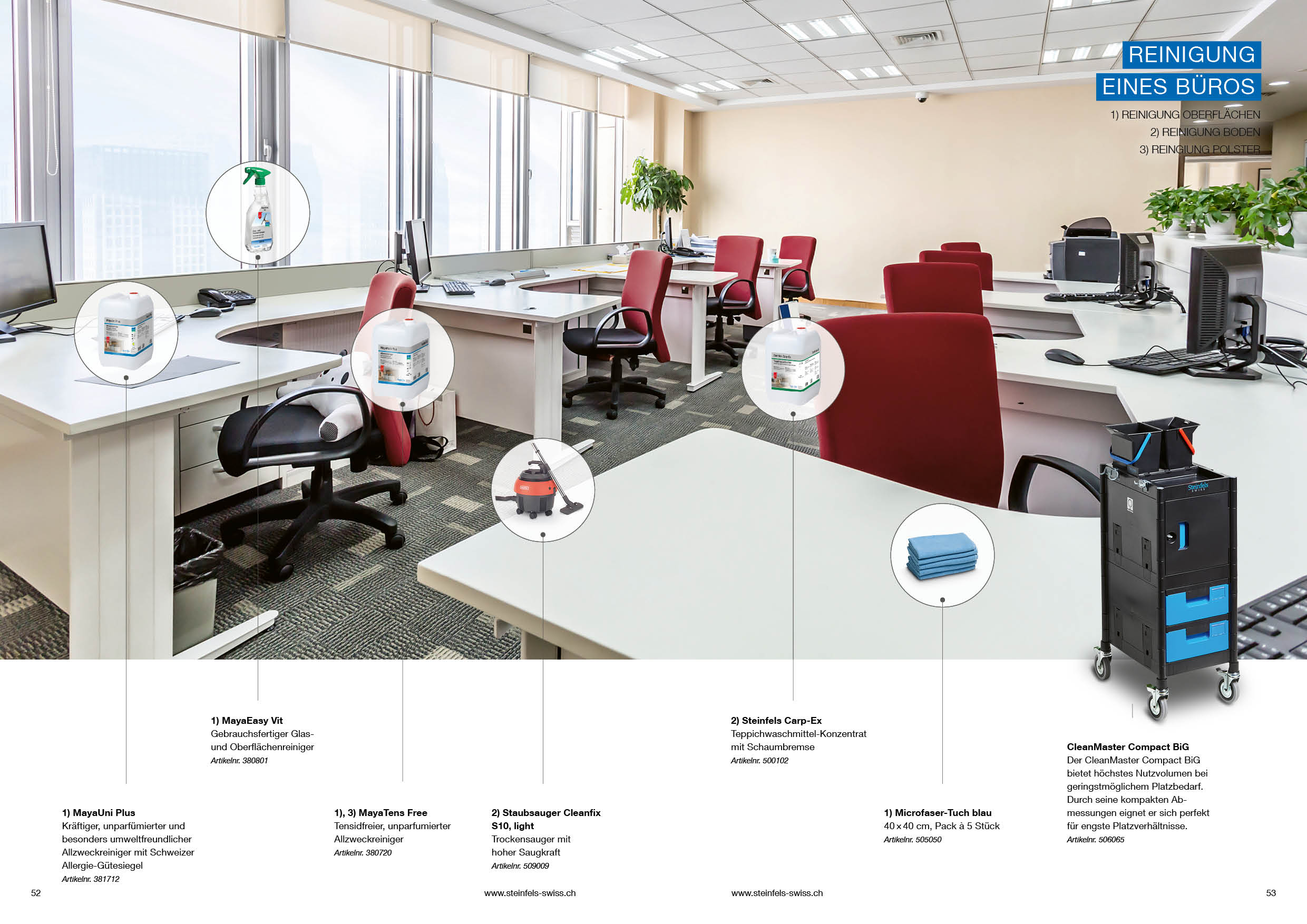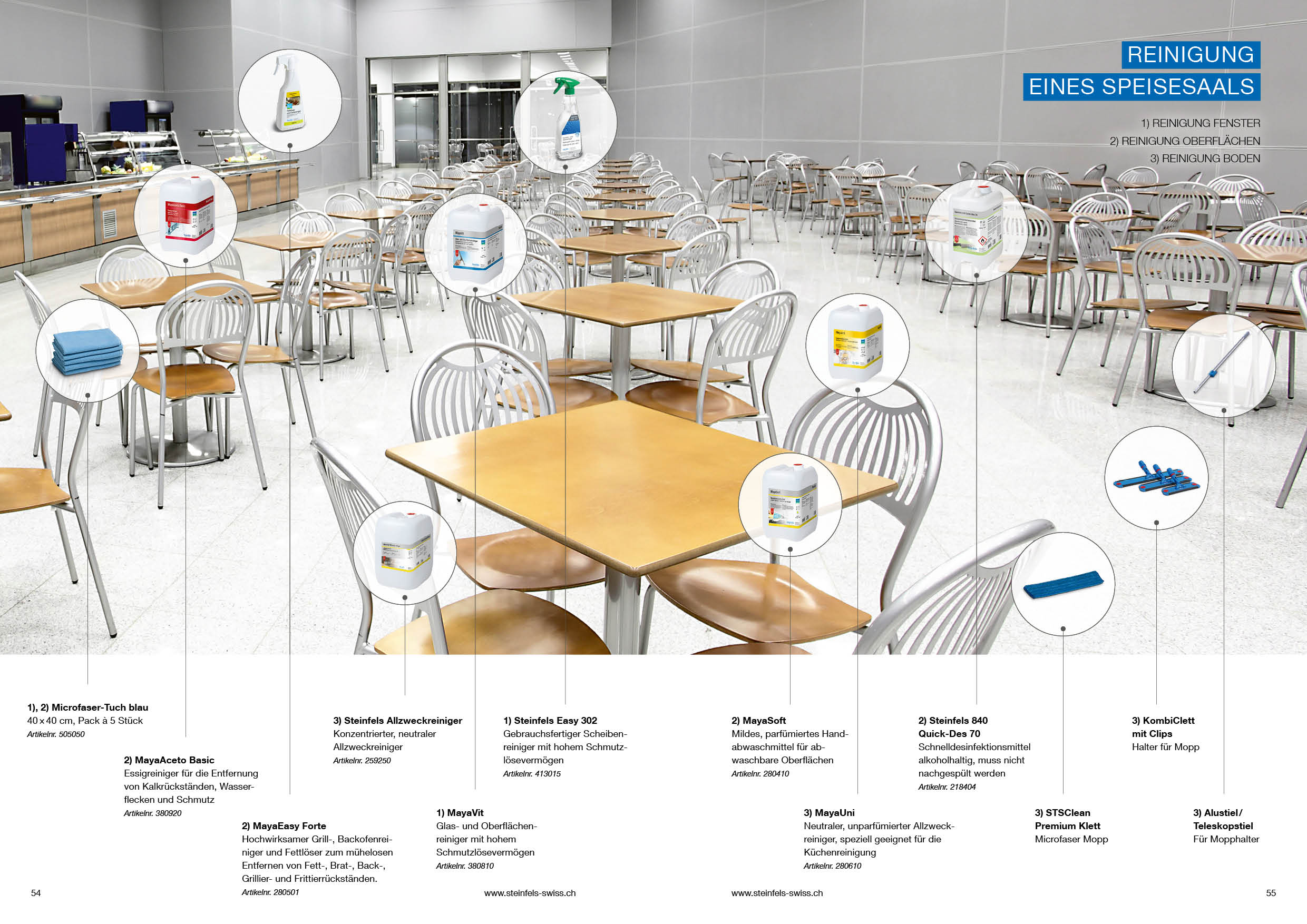 Als Auszug aus dem Methodendbuch haben wir nachfolgend unsere Produkteempfehlungen für die verschiedenen Reinigungsbereiche aufgeführt: