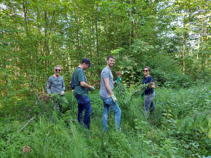 Tag der guten Tat in Winterthur: Einmal mehr – gelebte Nachhaltigkeit: Der Wald ist ein Naherholungsgebiet, welches zu schützen gilt. Die Mitarbeitenden der Steinfels Swiss haben die Gartenhandschuhe rausgeholt und unter fachkundiger Anleitung Waldgebiete und Wiesen, welche von invasiven Neophyten befallen sind, befreit. Neophyten sind eingeschleppte Pflanzen aus dem Ausland, die sich in der Schweiz ansiedelten und die einheimische Flora verdrängen.