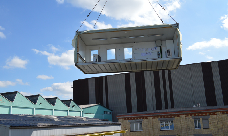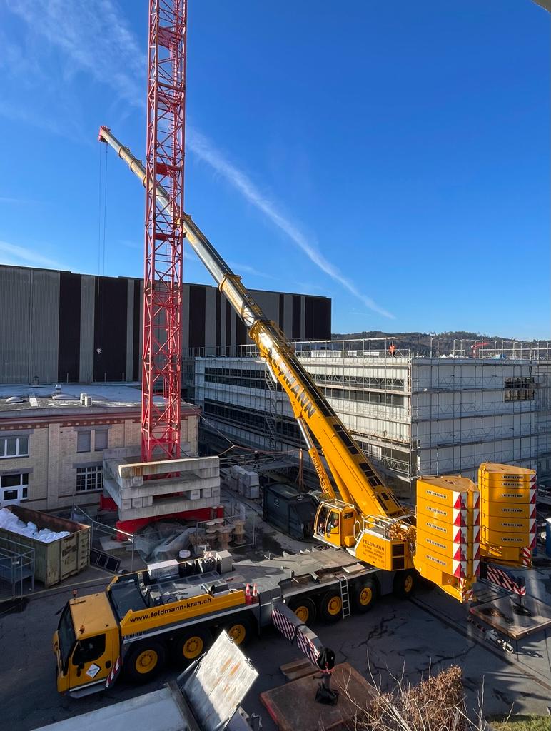 Quasi come nel famoso romanzo per bambini "La classe volante" (scritto da Erich Kästner nel 1933), a volare sopra i tetti della sede di Steinfels Swiss il 17.9 sono stati i container in cui si trovavano gli uffici e le sale riunioni. Per far spazio al cantiere, i container sono stati spostati in una nuova struttura provvisoria: un grande spettacolo per tutti i presenti, che hanno potuto assistere dal vivo alle abili manovre dell'addetto alla gru.