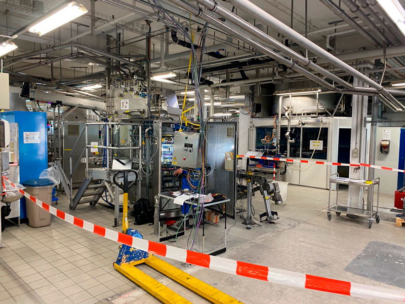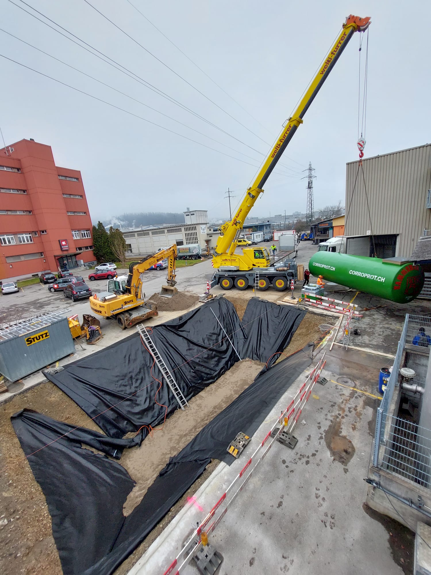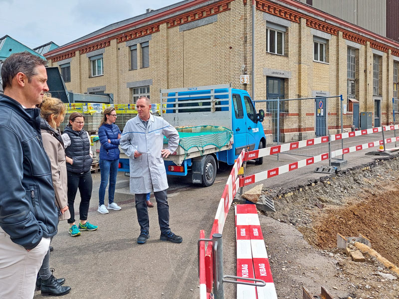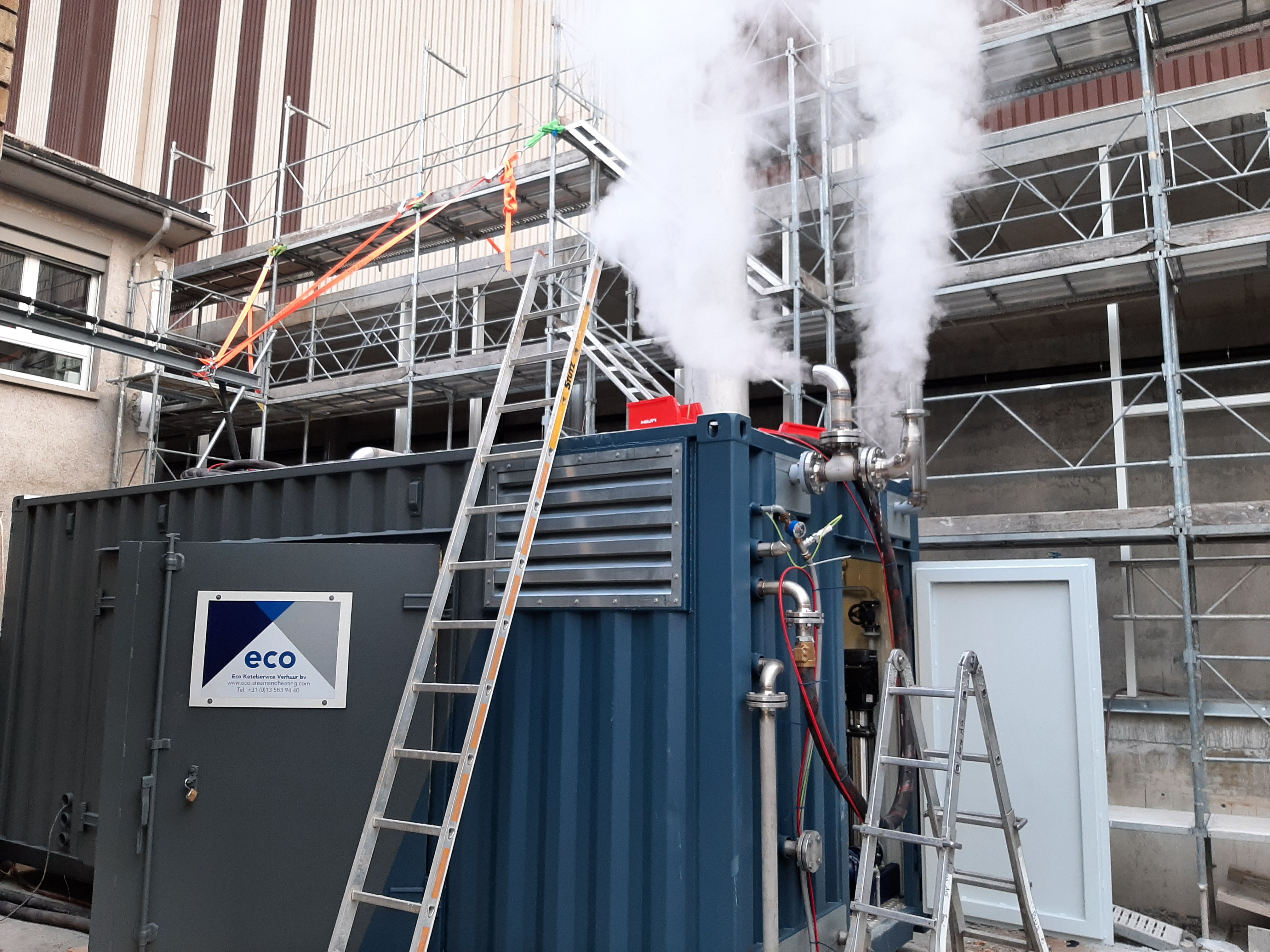 Per la produzione e per riscaldare i nostri edifici ci avvaliamo del teleriscaldamento fornito dall'inceneritore di Winterthur. Prossimamente le condutture di vapore saranno sottoposte ad alcuni lavori di adeguamento e di risanamento. Per continuare ad assicurare l'approvvigionamento di vapore, ieri un mezzo pesante ci ha consegnato un generatore di vapore mobile. Il macchinario con un peso a vuoto di ben 11,2 tonnellate ci fornirà vapore per il prossimo periodo. E ha già iniziato a emettere i primi sbuffi...