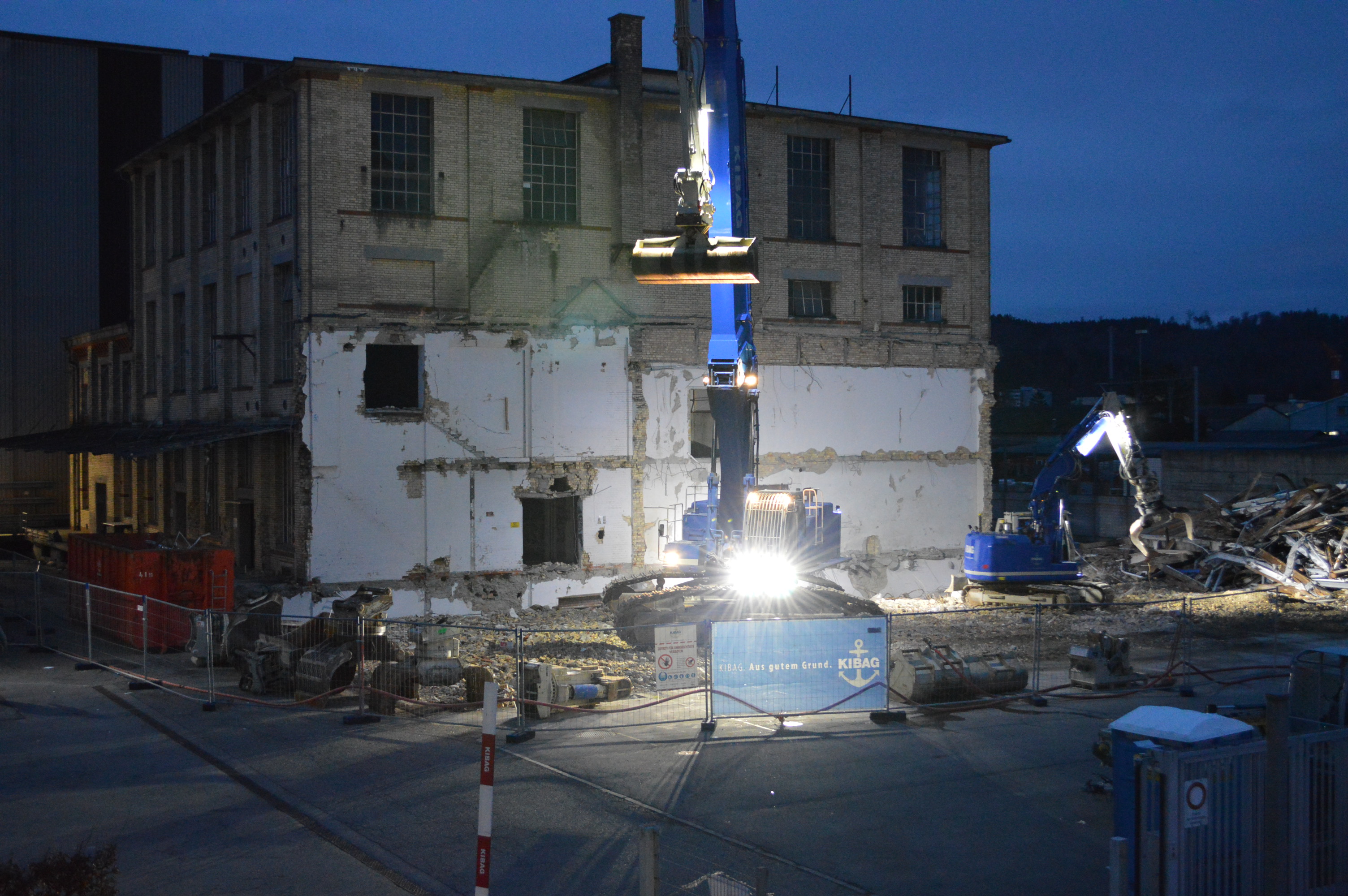 In occasione della demolizione abbiamo salutato il vecchio stabilimento per la produzione di saponi con una grande festa. Fino a tarda notte i locali della fabbrica hanno visto protagonisti vernici spray e martelli. Come ricordo, ogni collaboratore ha potuto contribuire alla demolizione dei muri rimuovendo un mattone.